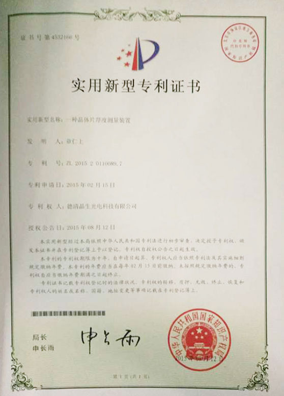 司現配有百級凈化工作臺、千級凈化房和萬級凈化車間,擁有定向儀、倒角機、滾圓機、線切割、4B、6B、9B、15B進口雙面磨、雙面拋光設備以及各種檢測設備。公司科研力量雄厚, 與國內各大兄弟單位建立了深厚的合作關系,而且各級管理人員和一線操作工人都經有關專家和教授指導和培訓。公司嚴格貫徹質量第一的方針,以公司產品質量為中心,為我們的客戶提供高品質的產品。